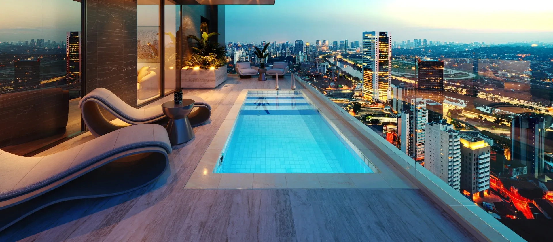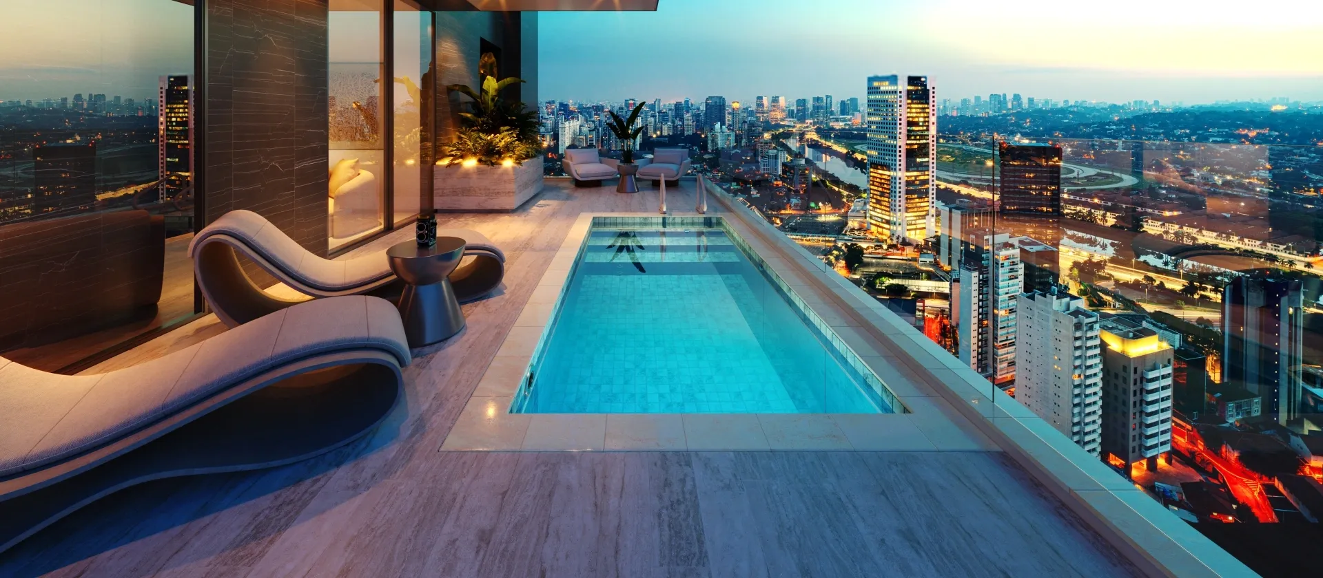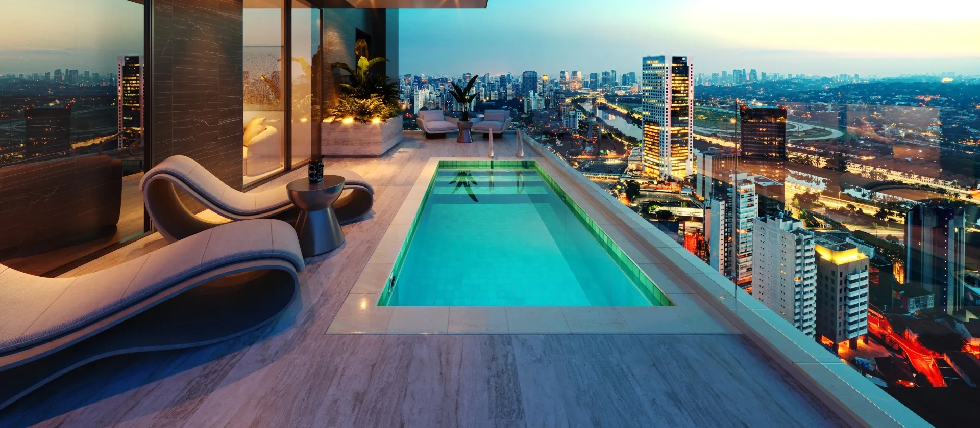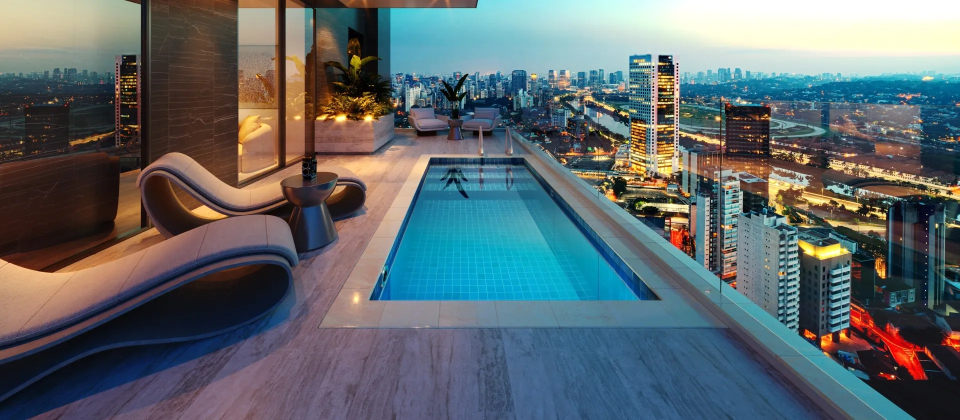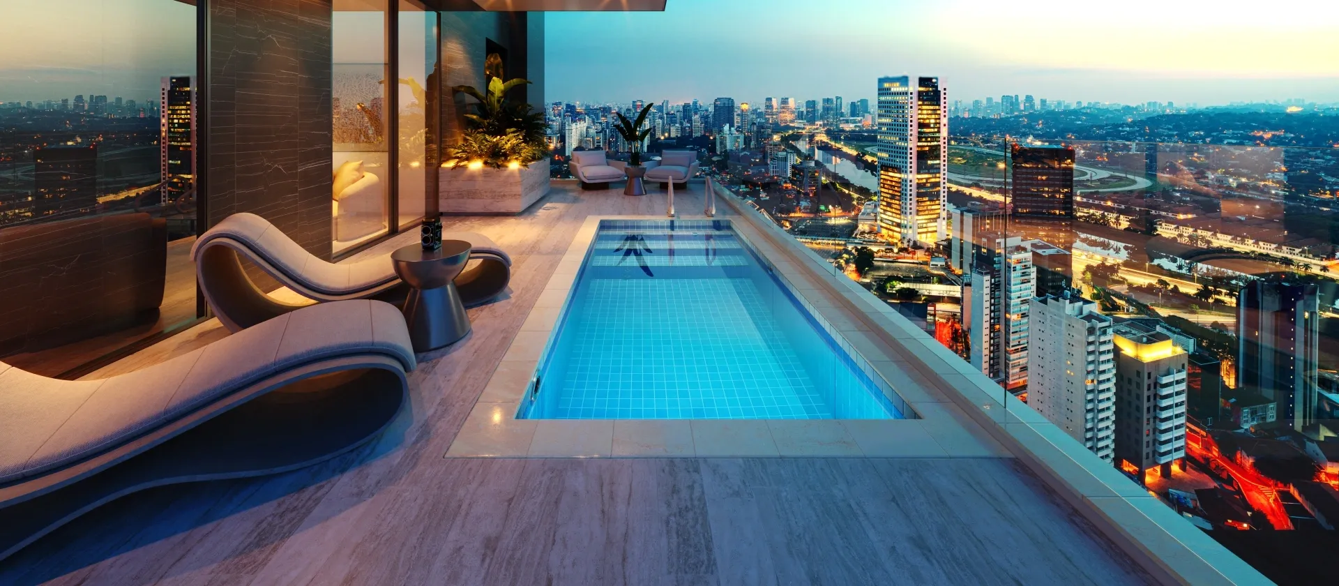 Você pode configurar sua piscina com acessórios incríveis, como: Transparência, Aquecimento, Fibra Ótica (fundo estrelado), Cascatas, Pedras Naturais para a borda (iGUi STONE), interatividade (Eletronic System), entre várias outras possibilidades.