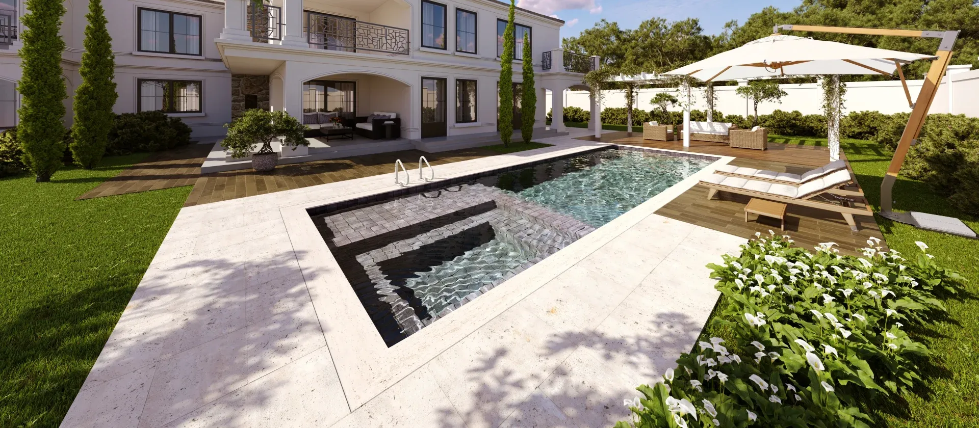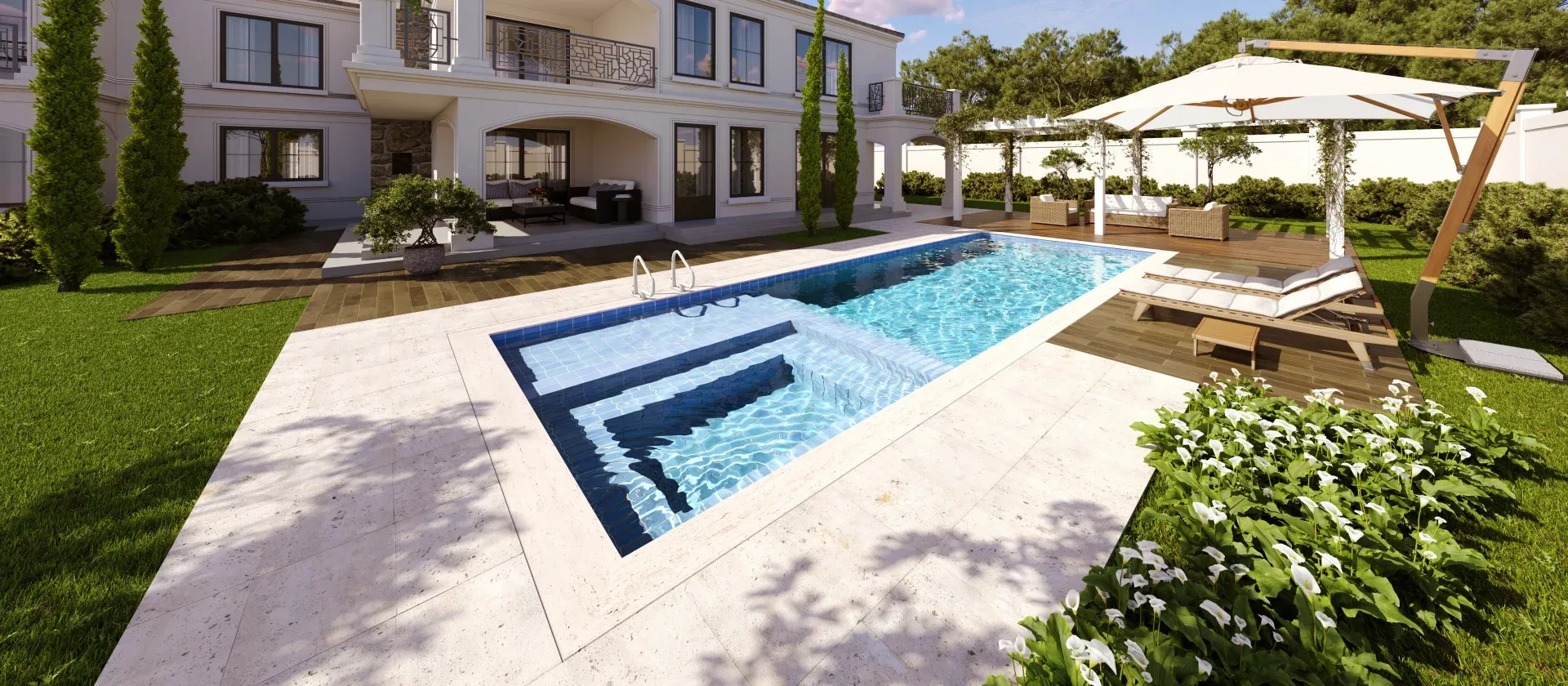 Você pode configurar sua piscina com acessórios incríveis, como: Transparência, Aquecimento, Fibra Ótica (fundo estrelado), Cascatas, Pedras Naturais para a borda (iGUi STONE), interatividade (Eletronic System), entre várias outras possibilidades.