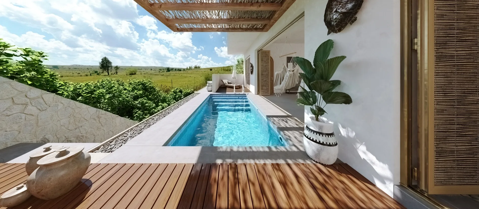 Você pode configurar sua piscina com acessórios incríveis, como: Transparência, Aquecimento, Fibra Ótica (fundo estrelado), Cascatas, Pedras Naturais para a borda (iGUi STONE), interatividade (Eletronic System), entre várias outras possibilidades.